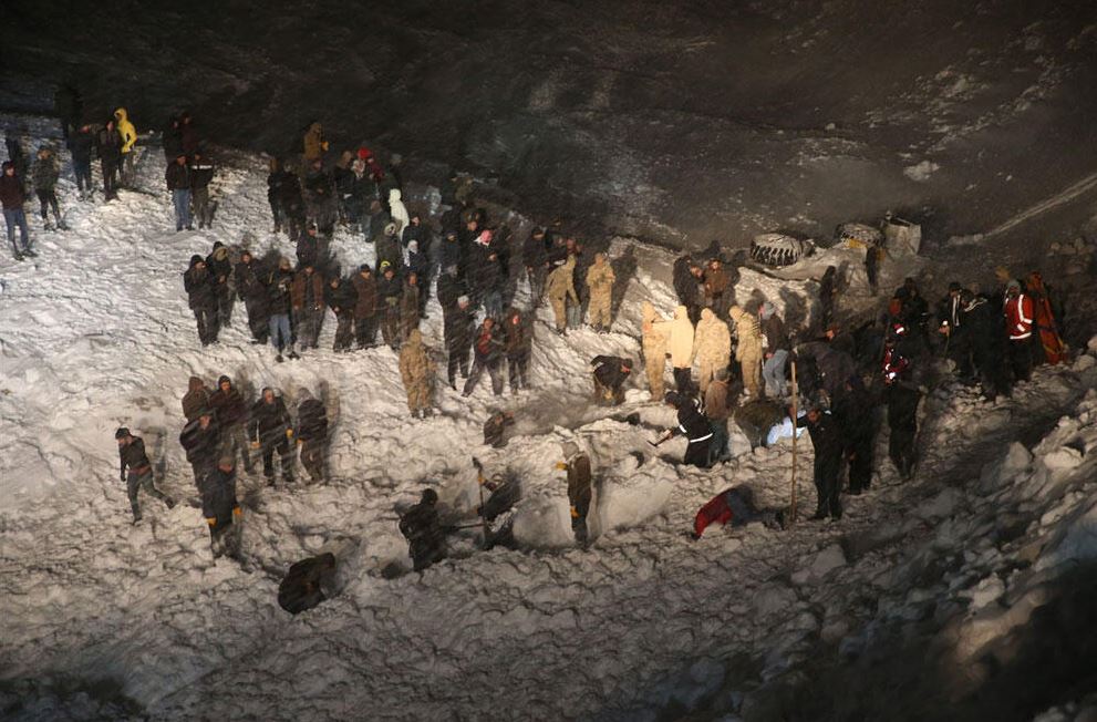 Olay yerine ulaşın ekipler ve yüzlerce köylü, olumsuz hava koşullarına rağmen tonlarca ağırlığındaki kar yığını altında kalan ve içerisinde 10’dan fazla kişinin olduğu tahmin edilen minibüstekilere ulaşabilmek için yoğun çaba sarf ediyor.