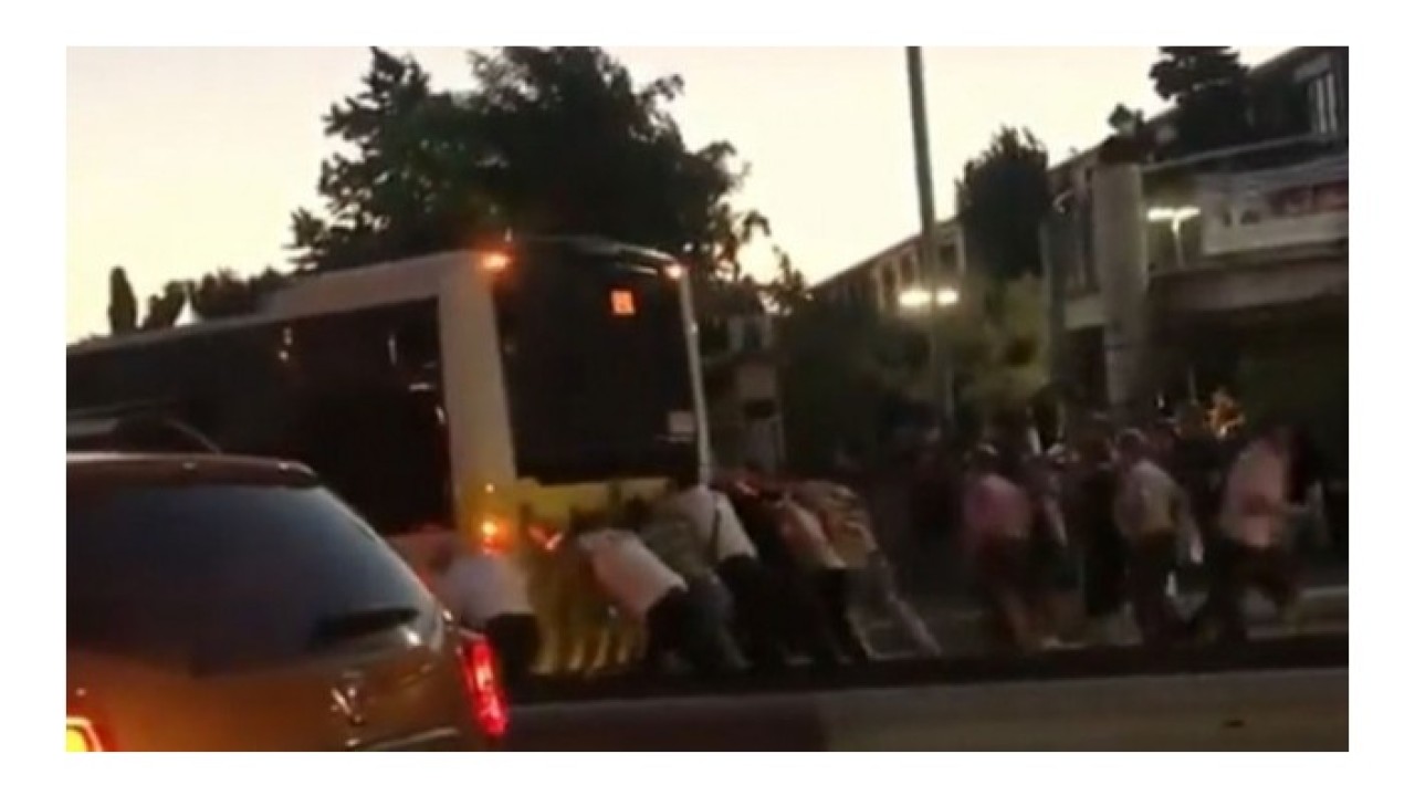 İETT'ye ait otobüs Sefaköy yolunda arıza yaptı. Arıza üzerine vatandaşlar inerek aracı itmeye başladı. Durumdan duydukları rahatsızlığı dile getiren otobüs yolcuları ve vatandaşlar İstanbul Büyük Şehir Belediyesine tepki verip, "İBB taşımıyor, halk taşıyor İBB'yi" diye çıkıştı.
