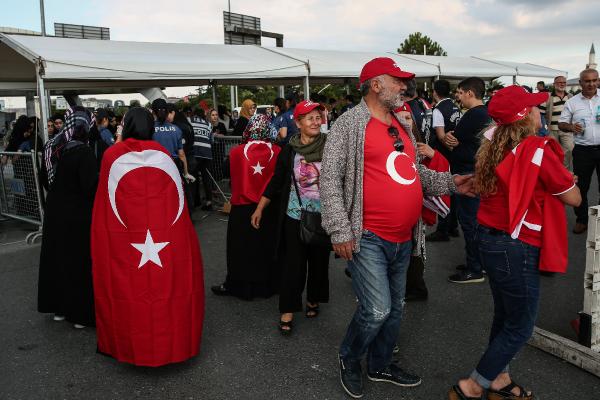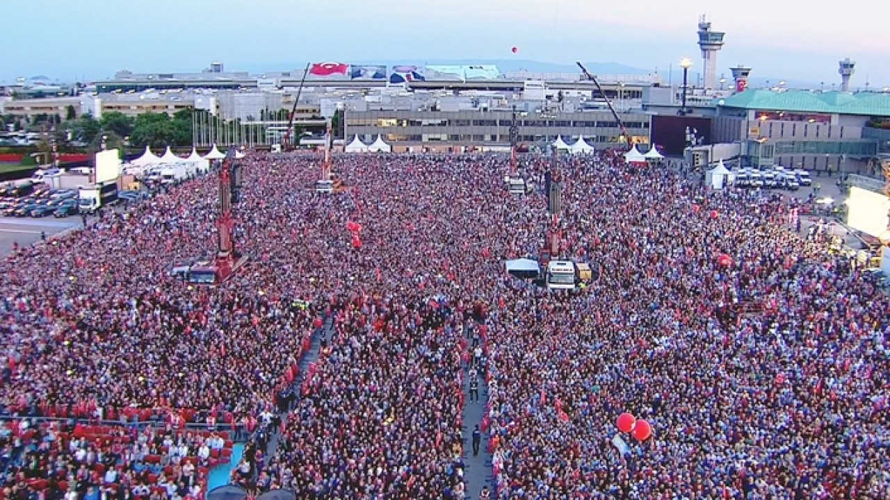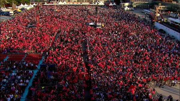 Apronda kurulan dev platformun önünde toplanan vatandaşlar, zaman zaman "Dik dur eğilme" ile darbeleri kınayan sloganlar attı.
