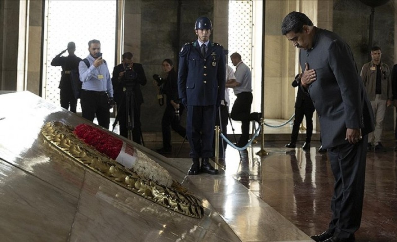 Gazi Mustafa Kemal Atatürk'ün mozolesine çelenk bırakarak saygı duruşunda bulunan Maduro, daha sonra beraberindeki heyetle hatıra fotoğrafı çektirdi.
