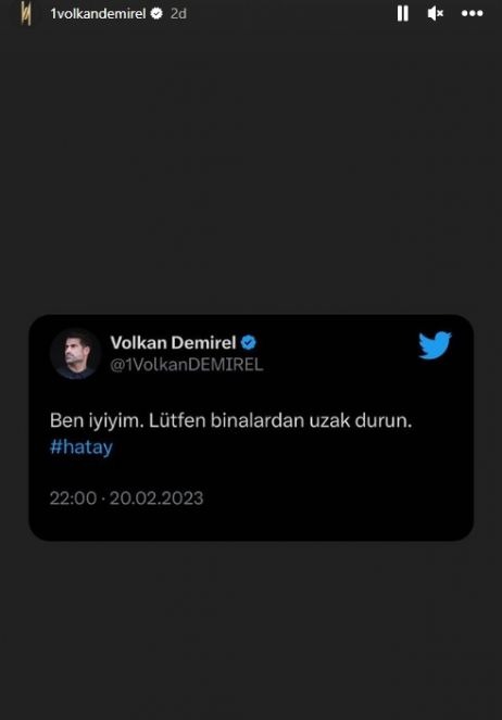 Volkan Demirel, bu akşamki depremlere de Hatay'ta yakalandı. Demirel, sosyal medya hesabından şu paylaşımı yaptı: