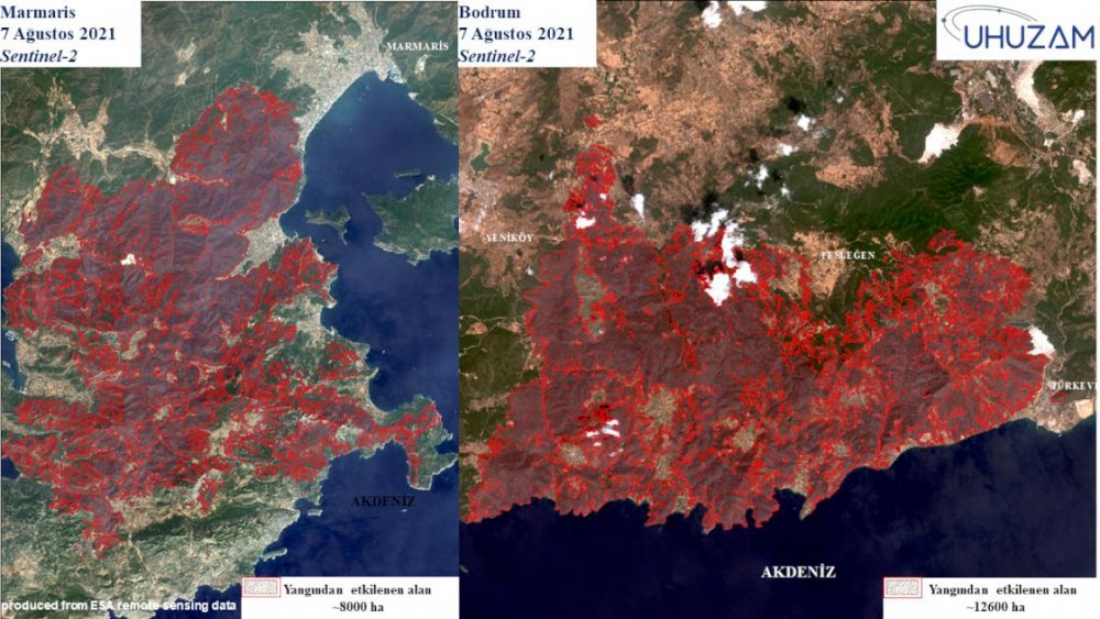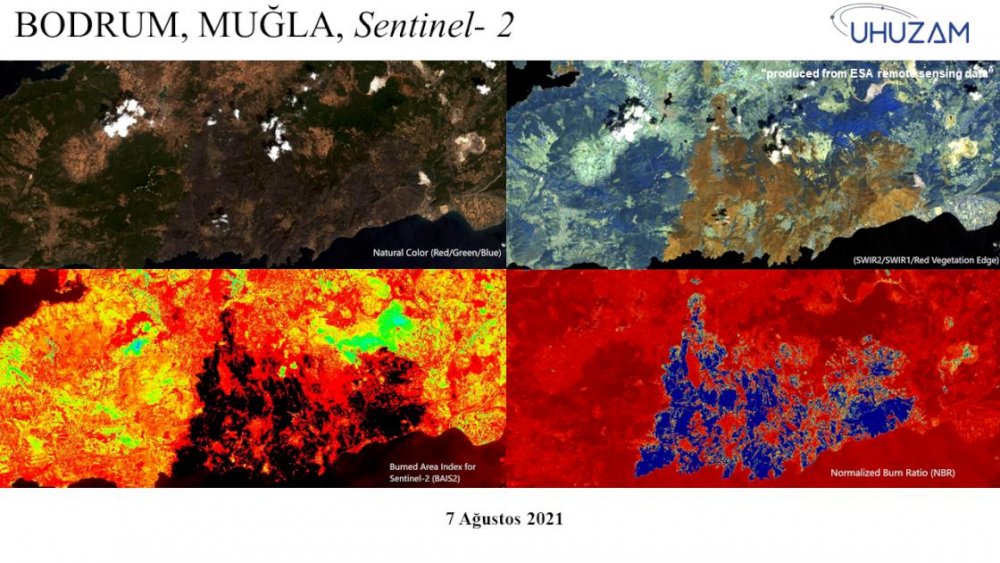Bu kapsamda, orman yangınların doğaya verdiği zarar, "Spot 6&7", "Worldview 2&3" ve "Sentinel-2" ve ''Landsat 8'' uyduları aracılığıyla görüntülendi. Uzaydan görüntülerle orman yangınlarının doğadaki tahribatının son durumu tespit edildi.