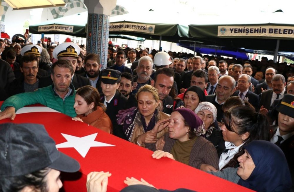 Muğdat Camii'nde kılınan cenaze namazının ardından Akbelen Şehitliği'nde son yolculuğuna uğurlandı. Göreve başlayalı henüz bir ay olduğu öğrenilen Mersinli kahraman şehidin Türk Bayrağı'na sarılı naaşı, gözyaşları içinde okunan dualarla ve yağmur altında toprağa verildi.