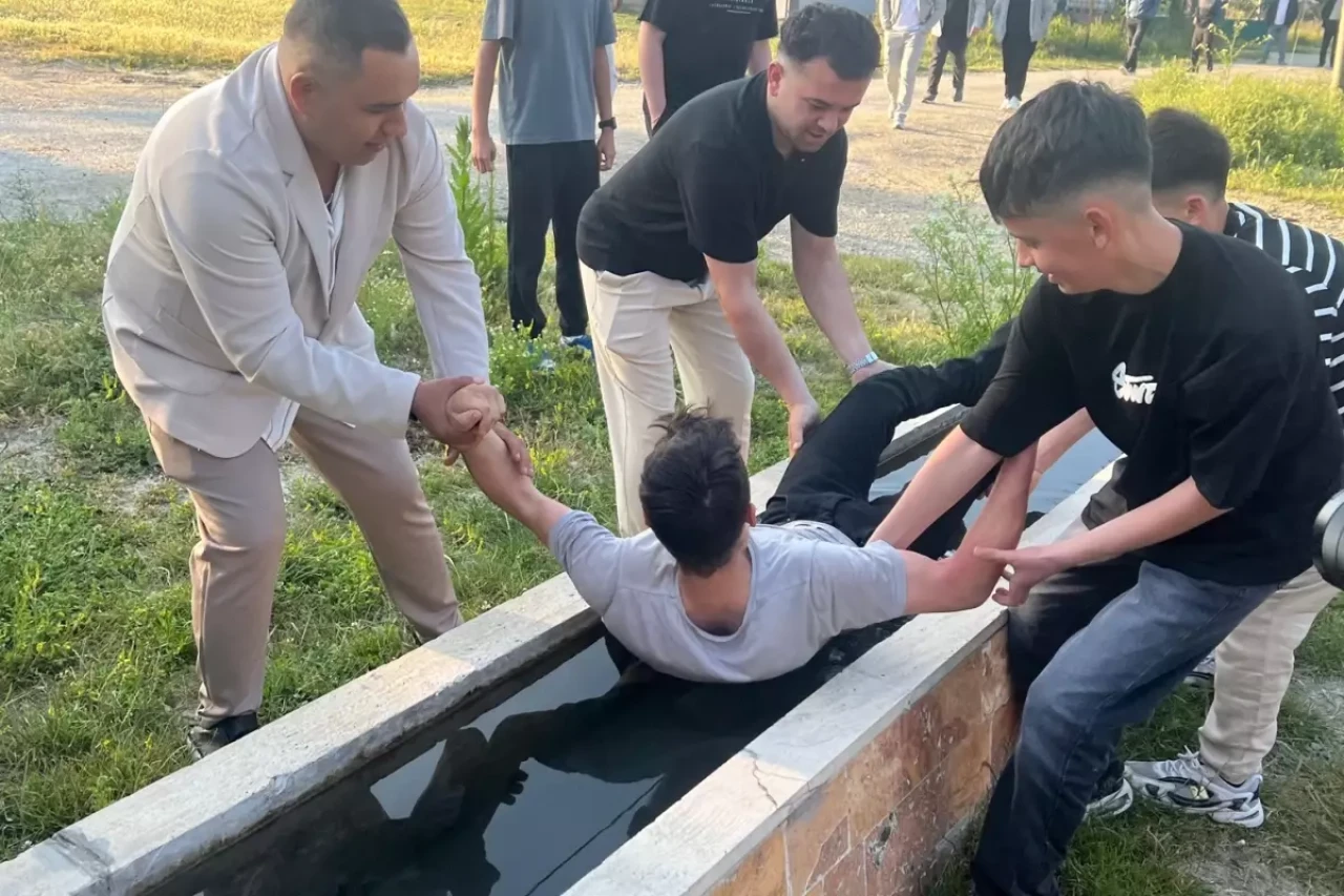 Köyde uzun yıllardır sürdürülen bu gelenek, özellikle gençler arasında eğlenceli bir ritüel haline geldi. Bu yılki uygulamanın “talihlisi” ise bayram namazına katılmayan Eren Özpolat oldu. Sabah saat 06.00'da kılınan bayram namazına gelmediği tespit edilen Özpolat, köyün gençleri tarafından evinden alınarak, içi buz gibi suyla dolu olan oluğa yatırıldı. O anlar, bayram sabahına kahkahalar ve neşeyle yansıdı.