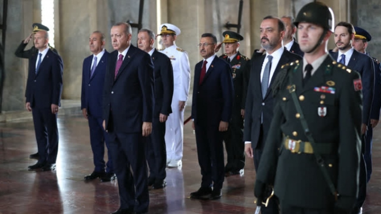 Erdoğan başkanlığında, Cumhurbaşkanı Yardımcısı Fuat Oktay, Milli Savunma Bakanı Hulusi Akar, Adalet Bakanı Abdulhamit Gül, İçişleri Bakanı Süleyman Soylu, Hazine ve Maliye Bakanı Berat Albayrak, Milli Eğitim Bakanı Ziya Selçuk, Dışişleri Bakanı Mevlüt Çavuşoğlu, Genelkurmay Başkanı Orgeneral Yaşar Güler, Kara Kuvvetleri Komutanı Orgeneral Ümit Dündar, Deniz Kuvvetleri Komutanı Oramiral Adnan Özbal ve Hava Kuvvetleri Komutanı Orgeneral Hasan Küçükakyüz Aslanlı Yol'dan geçerek, mozoleye çıktı.