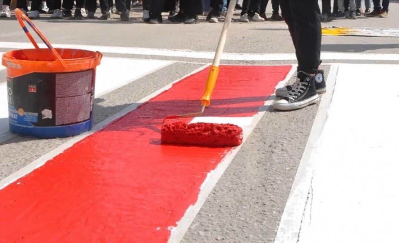 Ana güzergahlar üzerindeki ışıksız yaya geçitlerinde bulunan yaya çizgilerinden bir tanesi, kampanya etkinliği çerçevesinde sembolik olarak kırmızıya boyanacak.