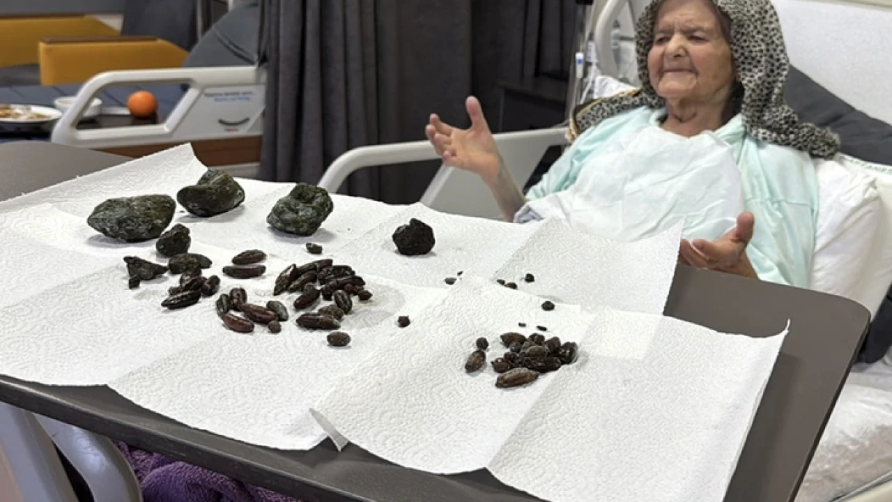 92 yaşındaki Şerife Ay, 5 Şubat'ta karın ağrısı ve kusma şikayetiyle hastaneye getirildi. Kontrollerin ardından Zonguldak Bülent Ecevit Üniversitesi (BEUN) Hastanesine sevk edilen Ay'ın burada çekilen tomografisinde, mide ve bağırsağında yabancı cisimler tespit edildi. Kan değerlerinin de yüksek olması nedeniyle ameliyata alınan Ay'ın ince bağırsağını 4 santimetre büyüklüğündeki taşın tıkayarak, organın çürümesine ve delinmesine neden olduğu belirlendi.