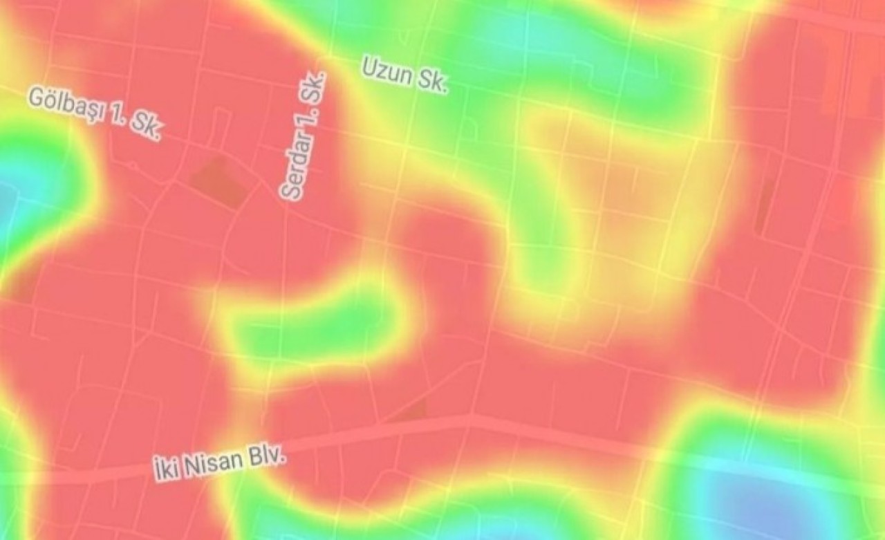 Koronavirüs yayılımını ve riskli bölgeleri gösteren uygulamada özellikle merkez Beşyol Meydanı, Cumhuriyet, Maraş, İkinisan, İskele ve Sıhke caddelerinde yoğunluk görüldü. Son zamanlarda toplu konutlarda da riskin arttığı gözlemlenen haritada, salgının kırsal mahallelere de sıçradığı görüldü.