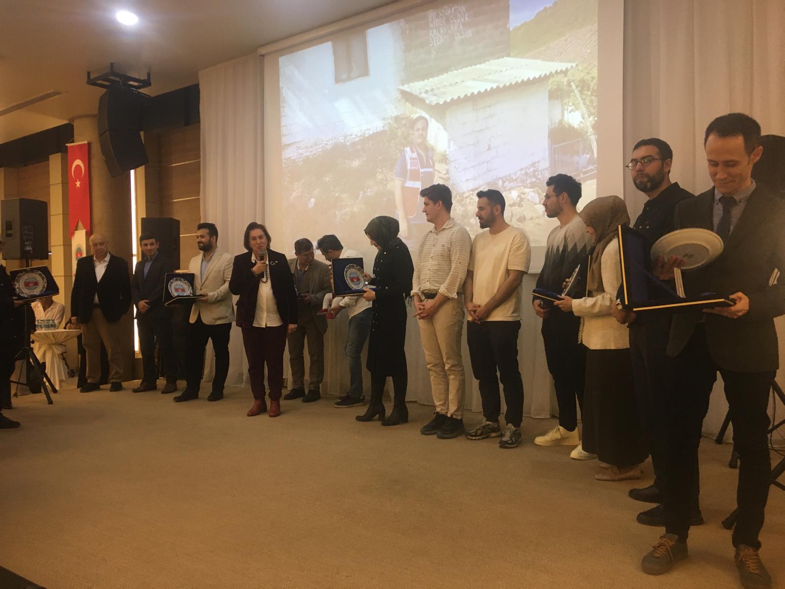 Genç uzman doktorlarımızı yanaklarından öperek plaketlerini verdiler.