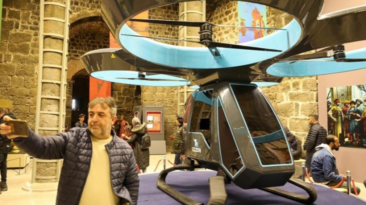 Sergideki makinelerin prototipleri ve uçan araba Cezeri ile ilgili bilgi alan ziyaretçiler, hatıra fotoğraf da çektirdi.