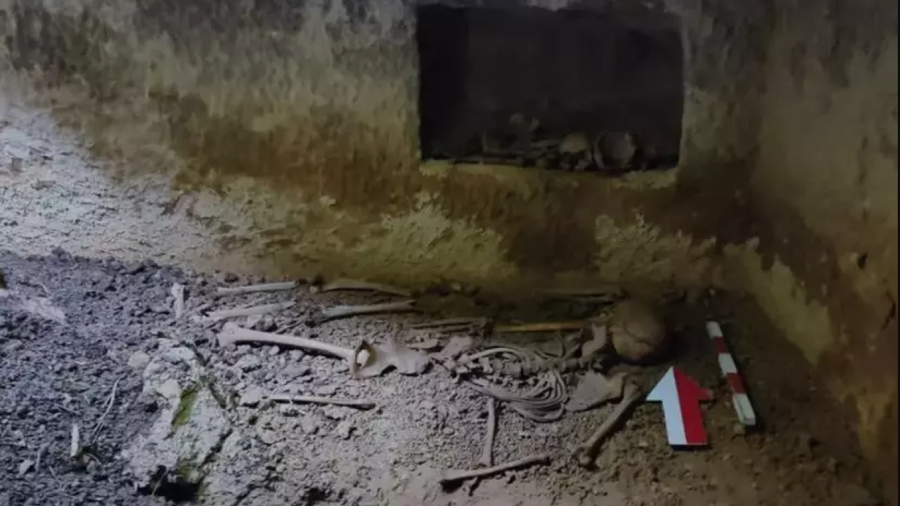 Gaziantep'te bir evin bahçesindeki çökmenin ardından 2, 5 metre yüksekliğinde Roma dönemine ait tek oda mezar, 5 adet insan kemiği, 1 adet içi boş çömlek ve 1 adet bronz fibula iğnesi bulundu.