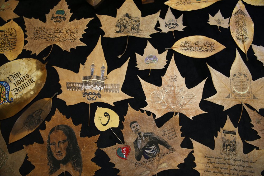"Duygusal olduğum bir günde yerde gördüğüm çınar yaprağını aldım ve üzerine İhlas-ı Şerifi talik olarak yazdım. Çok hoşuma gitti. İlk müşteri de annem oldu. 'Bana da yazar mısın?' dedi. Ona da İsmi Nebi'yi yazdım. Sonra fark ettim ki yaprağın üzerindeki yazı çok güzel duruyor. Yaprak doğal, yazı Allah'ın sözü. Biz defterdeki sayfalara ne isim veririz? Yaprak. Sonra yaprak üzerine araştırmalar yapmaya başladığımda toplumun çok evvelki yıllarda ağaç yapraklarına yazı yazdığını gördüm. Bunları toplamaya başlayınca belediye gelip teşekkür etti. Semtteki bütün yapraklar bana geliyor. Eğri büğrü, onların bazı bölümlerini ayırıyorum, bazılarını da atıyorum. Hem bir çevre temizliği hem de çevre dönüşümü oldu. Kağıt tüketmiyorum, yaprağı yazıyorum. Yaprak çöp oluyor, tabiata geri dönüyor. Tabiata dönen yaprağın üzerine yazı yazıp belki de minimalist bir çevre hareketi başlatmış oldum."