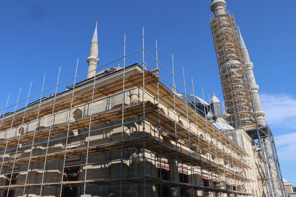 Türk-İslam mimarisinin zirve eseri Selimiye Camisi'nin geleceğe güvenle taşınması için başlatılan restorasyon, iç ve dış mekandaki çalışmalarla devam ediyor.