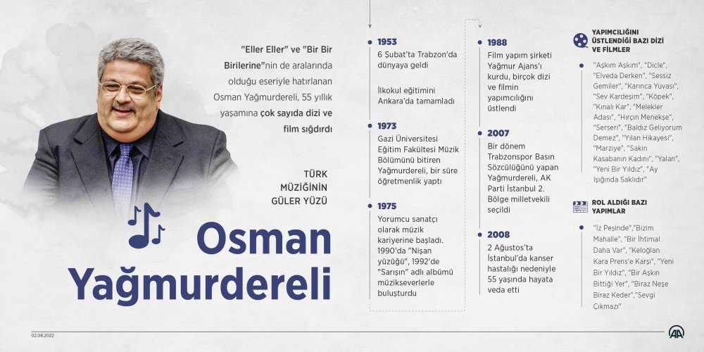 "Devlet Sanatçısı'" unvanı da alan Osman Yağmurdereli, 5 yıl üst üste "Altın Kelebek En İyi Yapımcı Ödülünü"nün sahibi oldu.