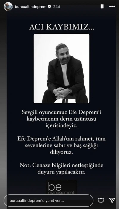 Eşi Burcu Altın Deprem, sosyal medya hesabından şu paylaşımı yaptı: