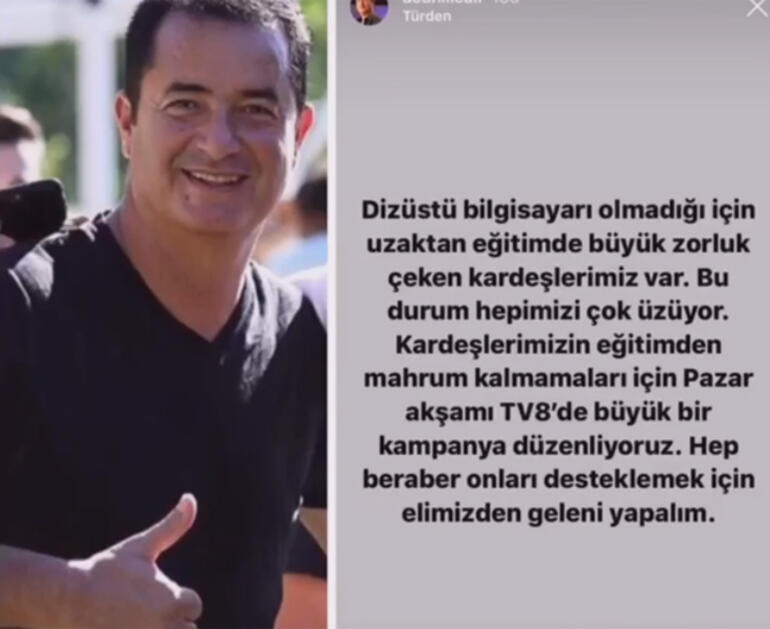 Acun Ilıcalı, "Dizüstü bilgisayarı olmadığı için uzaktan eğitimde büyük zorluk çeken kardeşlerimiz var. Bu durum hepimizi çok üzüyor." dedi ve pazar günü büyük bir kampanya başlatacaklarını duyurdu.