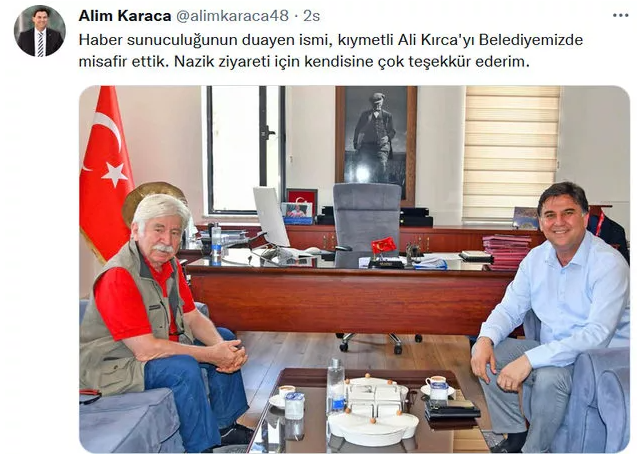 Ali Kırca'nın gündem olan fotoğrafı, Fethiye Belediye Başkanı Alim Karaca'yı ziyareti sırasında çekildi. Başkan Karaca, birlikte çekilen fotoğrafı da sosyal medyadan paylaştı.