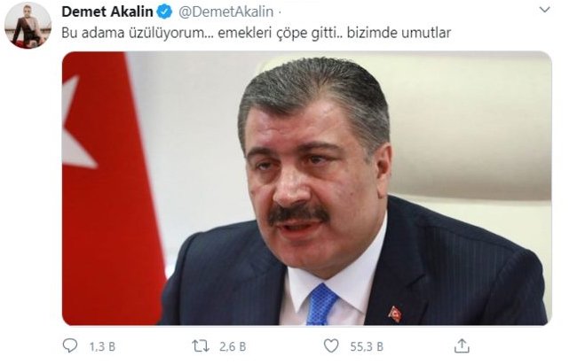 Akalın fotoğrafın üstüne de "Bu adama üzülüyorum... Emekleri çöpe gitti... Bizim de umutlar" diye yazdı.