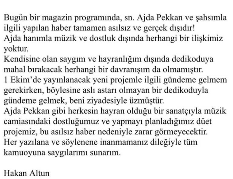 Bu iddialara ilk cevap Hakan Altun'dan geldi. Altun şu açıklamayı yaptı: