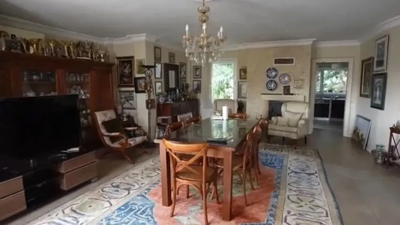 Sanata olan ilgisiyle bilinen Ergün’ün evi adeta bir galeri havasında. Geniş salonunda çok sayıda tablo, antika mobilya ve klasik tarzda döşenmiş detaylar dikkat çekiyor. Eskitme vitrinler, zarif büfeler ve krem tonlarının hâkim olduğu oturma grupları eve sıcak bir hava katıyor.