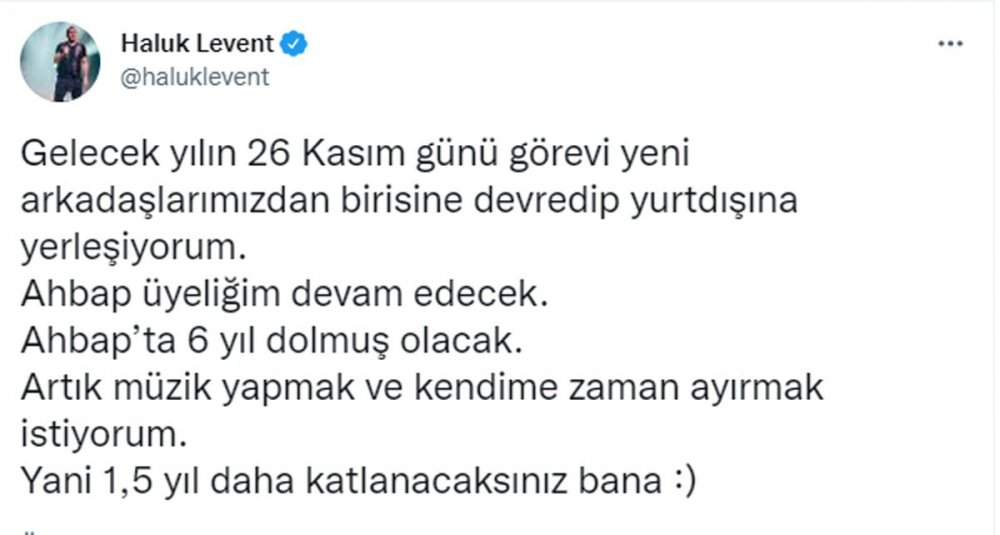 Ünlü ses sanatçısı Haluk Levent, sosyal medya hesabından bir paylaşım yaparak, kurucusu olduğu AHBAP platformuyla ili açıklamada bulundu.