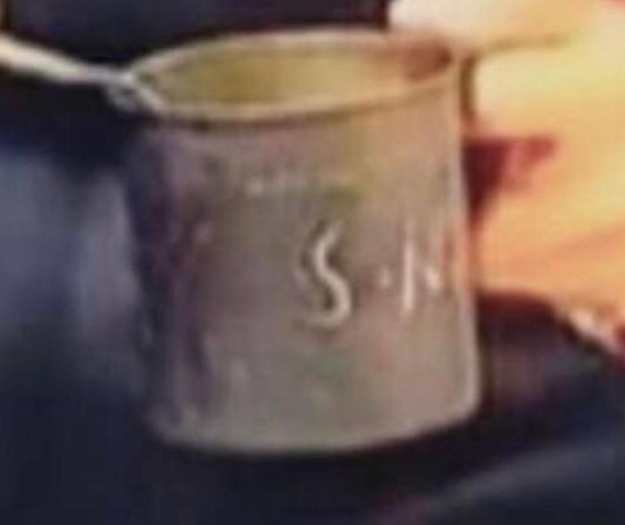 Bardağına baş harflerini kazımış