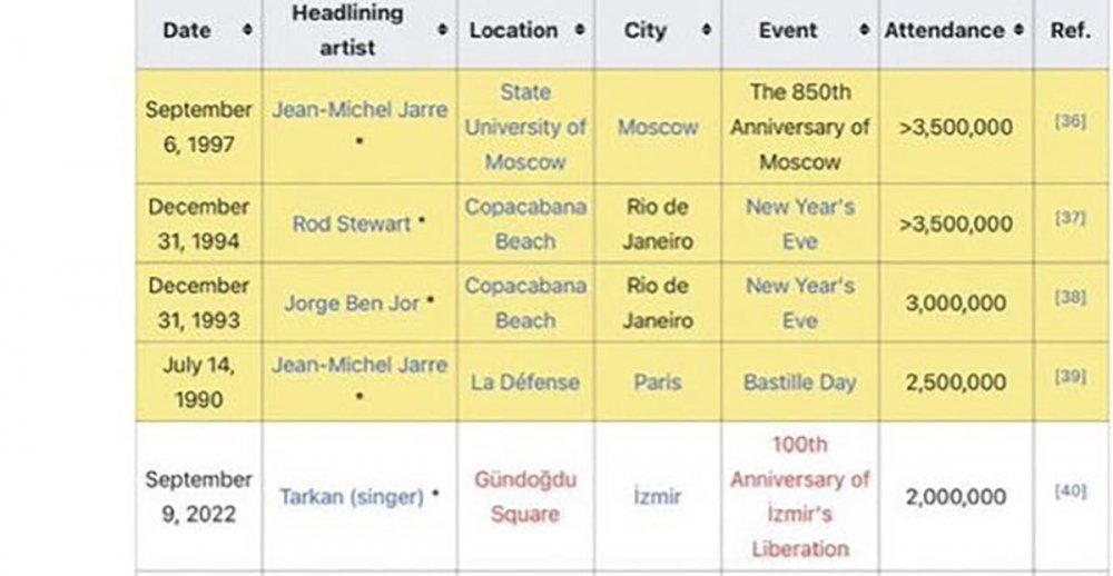 Bu sayıyla birlikte Megastar'ın İzmir konseri, dünya tarihindeki en kalabalık ücretsiz konserlerinde ilk beşe yerleşmiş oldu.