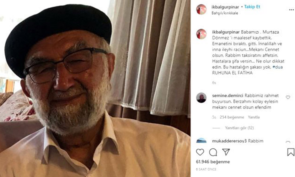 Kanal 7 ve TRT ekranlarında uzun yıllar program yapan İkbal Gürpınar, sosyal medya hesabı Instagram’dan babası Murtaza Dönmez’ın hayatını kaybettiğini duyurdu. Koronavirüs nedeniyle yaşamını yitiren Murtaza, bugün son yolculuğuna uğurlanacak.