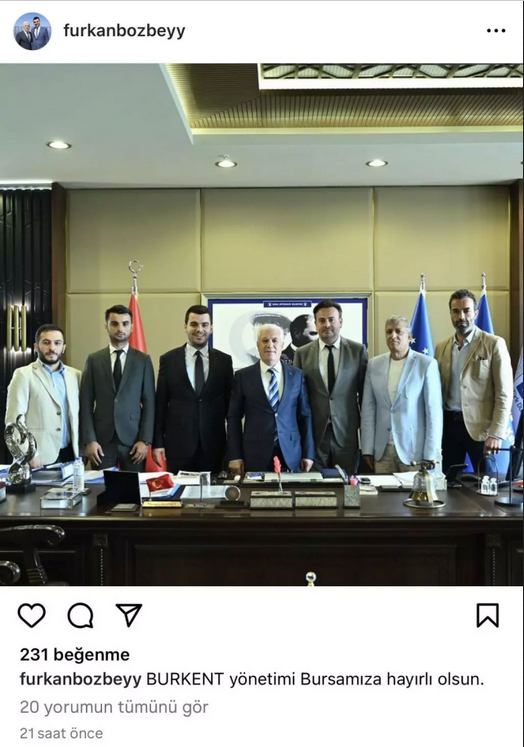 Furkan Bozbey daha sonra Instagram biyografisine 'BURKENT yönetim kurulu başkanı' titrini ekledi, gelen tepkiler sonrasında paylaşımını sildi.
