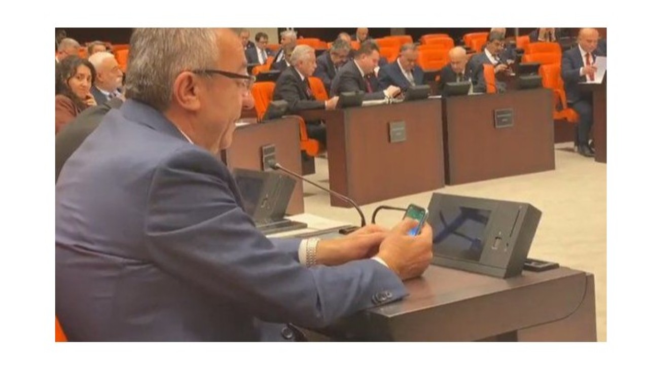 TBMM 2023 Yılı Merkezi Yönetim Bütçe Kanunu Teklifi'nin tümü üzerindeki görüşmeler yapıldığı sırada, CHP Grup Başkanvekili Engin Altay cep telefonundan iskambil oyunu oynadı.