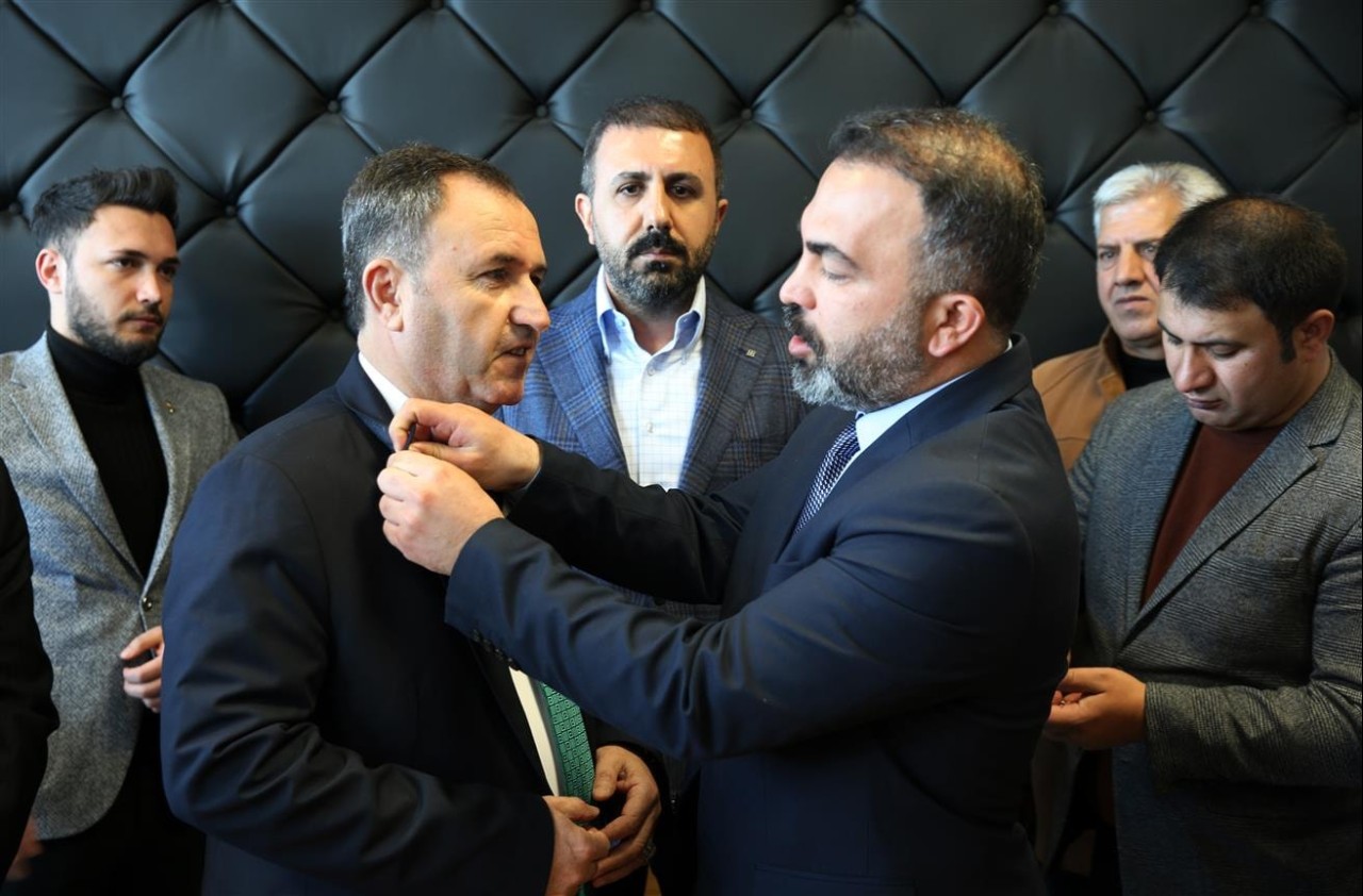 AK Parti Bitlis İl Başkanı Kadir Köstekçi, Soyugüzel'e AK Parti rozetini taktı.