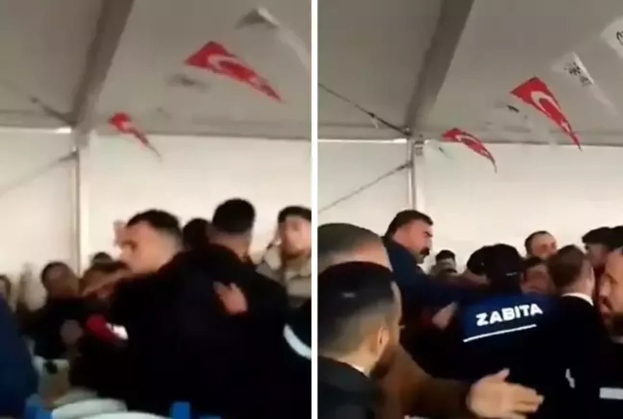 Güvenlik görevlileri, protestocu işçilerin alana yaklaşmasını engellerken, Özgür Özel’in konuşmasına devam etmesi dikkat çekti. İşçilerin protestosu ve güvenlik müdahalesi kameralara yansıdı.