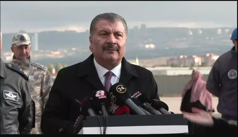 Yardım uçağıyla birlikte Mısır'ın El-Ariş Havalimanı'ndan Türkiye'ye hareket eden Sağlık Bakanı Fahrettin Koca, Esenboğa Havalimanı'nda basın açıklaması gerçekleştirdi.