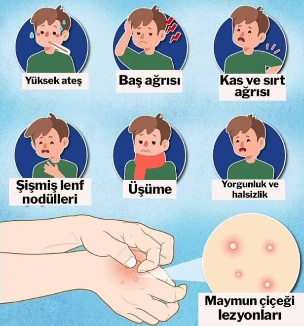 Afrika’da endemik bir hastalık olan ancak son dönemde ABD, Kanada, Avustralya ile birlikte Avrupa ülkelerine yayılarak endişe yaratan maymun çiçeği hastalığının en bilinen belirtileri arasında ateş, halsizlik, yaygın kas ağrısı, deri döküntüleri ve büyümüş lenf bezleri yer alıyor.