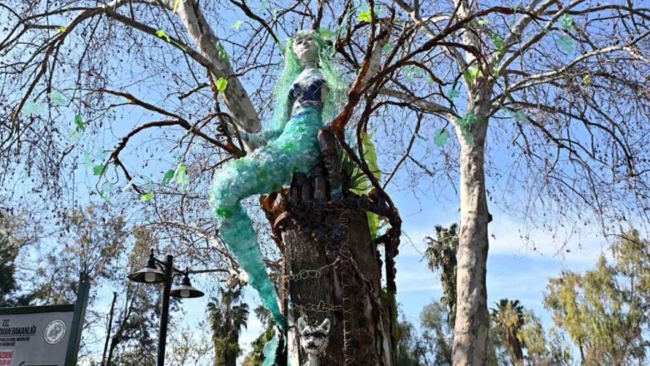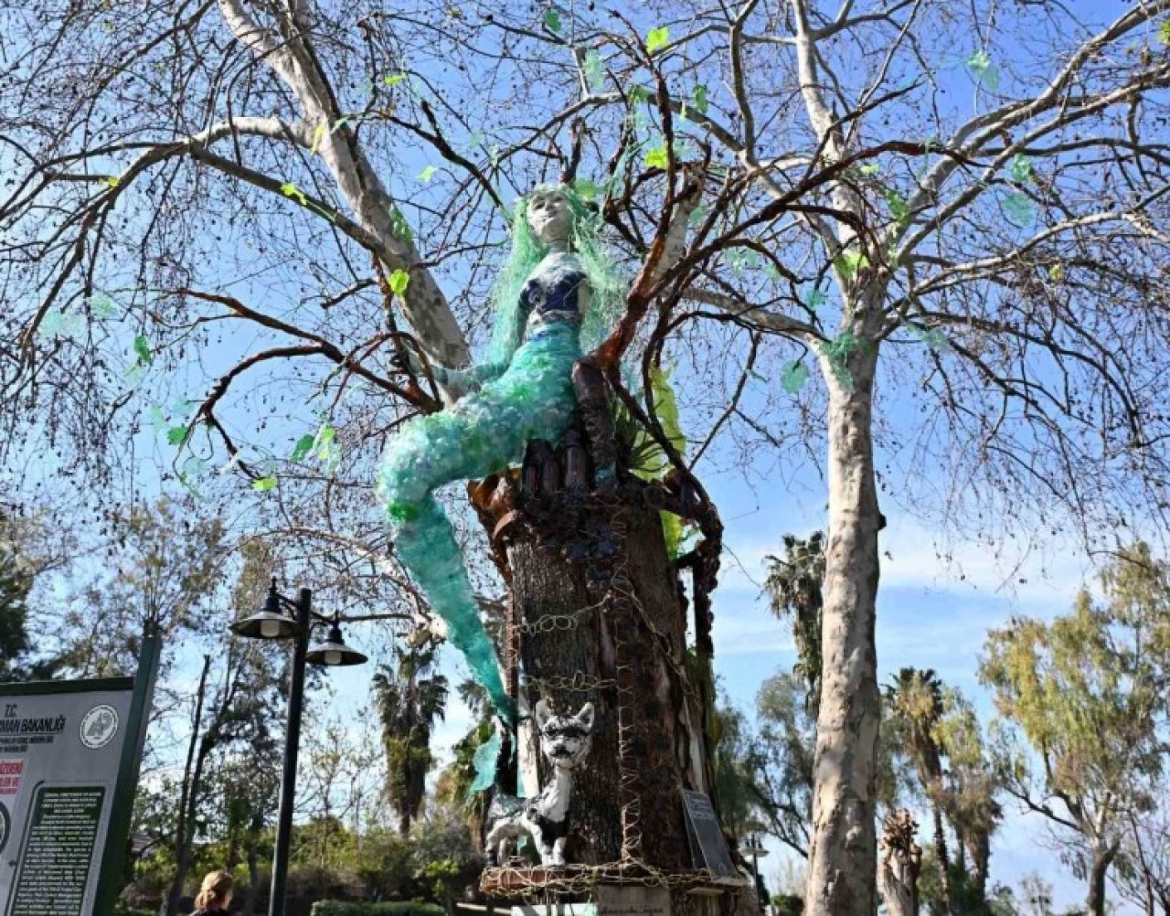 Antalya’nın falez sahil bandında yer alan Manavoğlu Parkı, sanat ve çevre bilincini bir araya getiren özel bir projeye ev sahipliği yapıyor. Rus sanatçı Güzel Amirova, ünlü yazar ve şair Aleksandr Puşkin’in Ruslan ve Ludmila şiirinden ilham alarak geri dönüşüm malzemelerinden bir denizkızı heykeli yaptı.