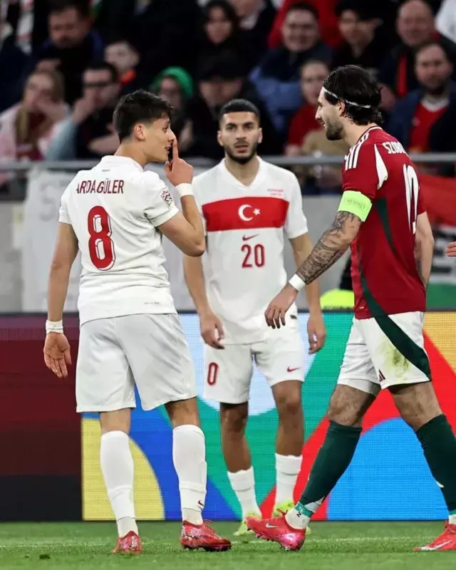 UEFA Uluslar Ligi play-off turunda Macaristan’ı 3-1 ve 3-0’lık skorlarla mağlup ederek A Ligi’ne yükselen Türkiye’de maçın yıldızlarından biri Arda Güler olmuştu. Özellikle 2. maçta attığı gol sonrası Szoboszlai’ye yaptığı “sus” işareti, gündeme oturmuştu.