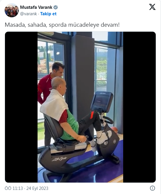 Erdoğan'ın kondisyon bisikletinde ısınmasıyla başlayan görüntülerde, Gençlik ve Spor Bakanı Osman Aşkın Bak, Çalışma ve Sosyal Güvenlik Bakanı Vedat Işıkhan, MİT Başkanı İbrahim Kalın, Cumhurbaşkanlığı İletişim Başkanı Fahrettin Altun, milletvekilleri Mevlüt Çavuşoğlu, Mehmet Muharrem Kasapoğlu ve Mustafa Varank, Alpay Özalan, Gençlik ve Spor Bakan Yardımcısı Hamza Yerlikaya ile Türkiye Basketbol Federasyonu (TBF) Başkan Vekili Ömer Onan'ın yer aldığı görüldü.
