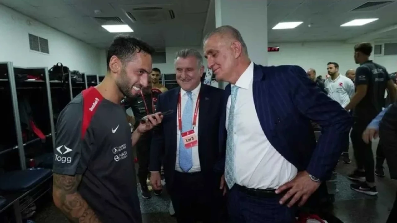 Erdoğan, Bakan Bak’ın telefonundan soyunma odasında Çalhanoğlu ve Montella ile görüşerek millî ekibin başarısından duyduğu memnuniyeti dile getirdi.