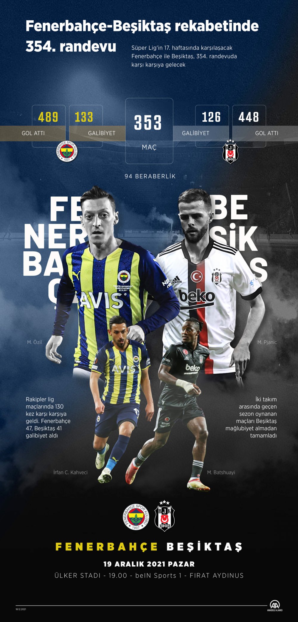 Her iki takımın lig maçlarındaki gol sayısı da geçen sezonun ilk yarısında Kadıköy'de Beşiktaş'ın 4-3 kazandığı maçla eşitlendi. İki ekip de birbirlerine 148'er gol attı.