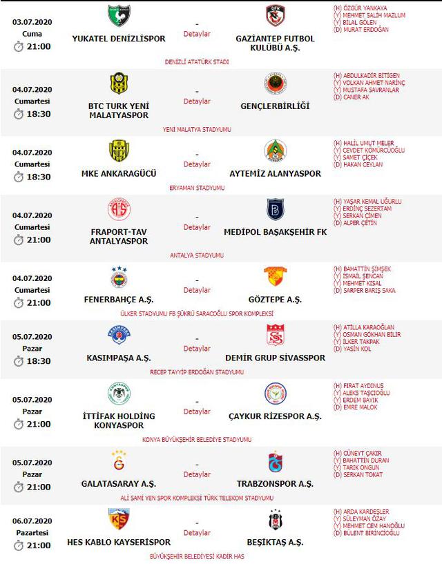 Süper Lig'de haftanın hakemleri şöyle: