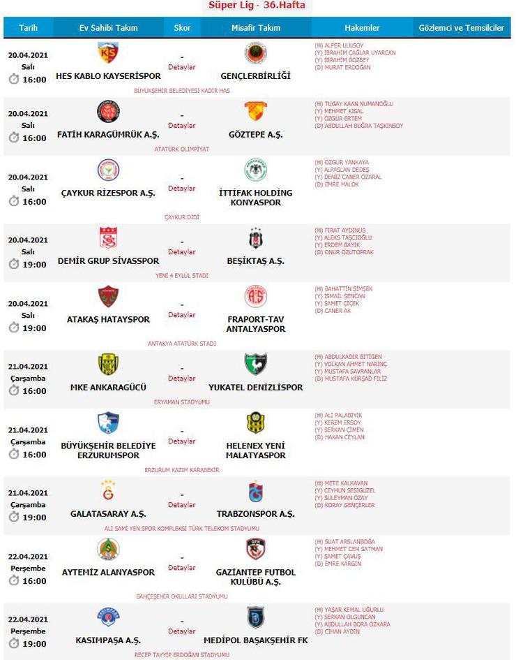 Süper Lig'de 36. haftanın hakemleri açıklandı. Uzun bir süre Galatasaray maçlarına çıkmayan Mete Kalkavan, sarı kırmızılı takımın Trabzonspor ile oynayacağı maça atandı.
