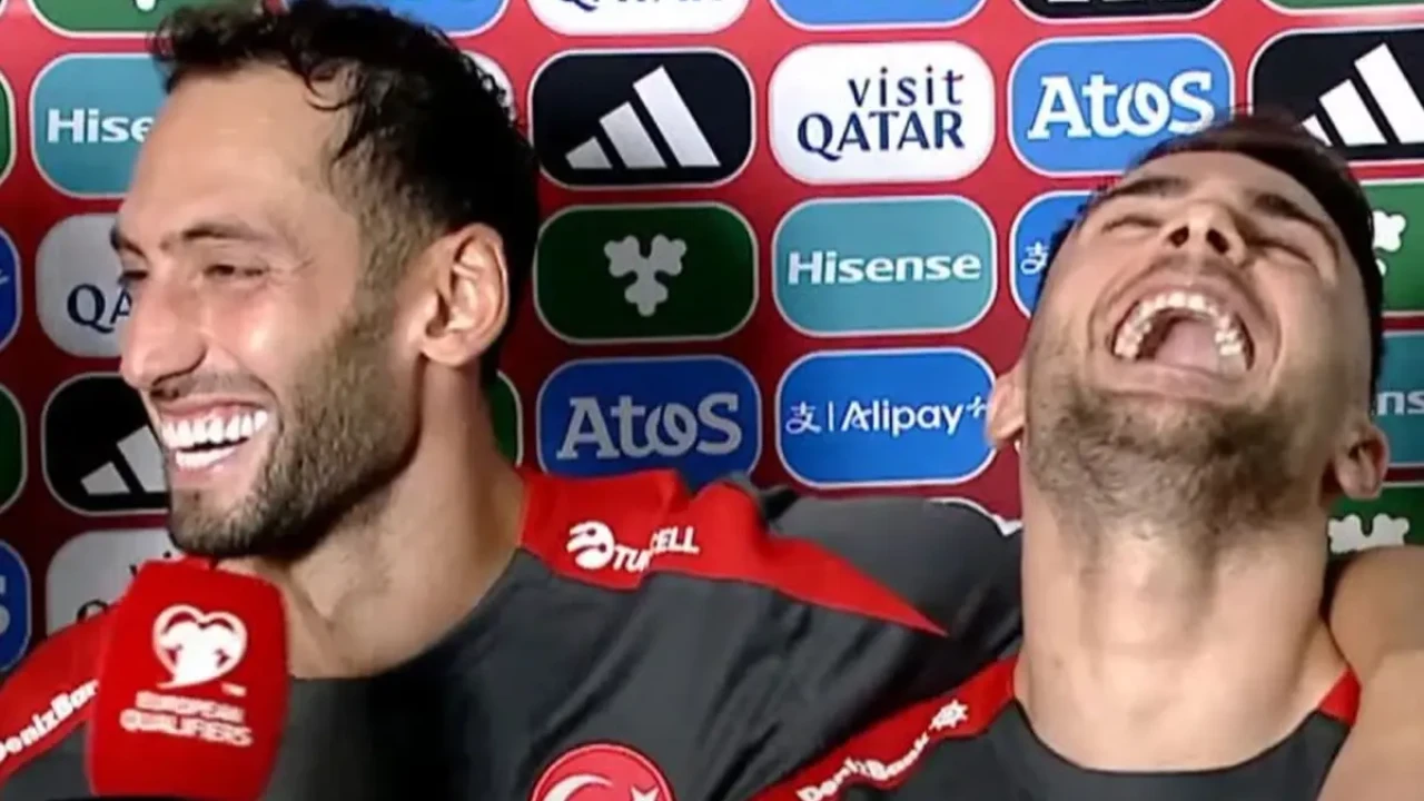 A Milli Takım’ın 2026 Dünya Kupası Elemeleri’nde Gürcistan’ı deplasmanda 3-2 mağlup ettiği maçın ardından Hakan Çalhanoğlu ve Yunus Akgün basın mensuplarının sorularını yanıtladı. Antrenmanda kavga ettikleri iddialarını reddeden iki futbolcu, gülerek yaptıkları açıklamalarla takım içinde herhangi bir sorun olmadığını vurguladı.