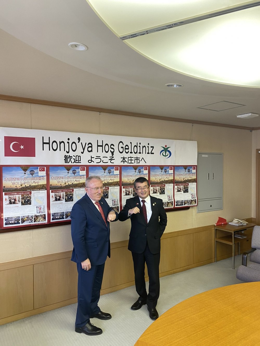 Gönüllülük sonrası Türkiye'nin Tokyo Büyükelçisi Hasan Murat Mercan, Honjo Belediye Başkanı Yoshida'yı büyükelçilikte ağırlamıştı.