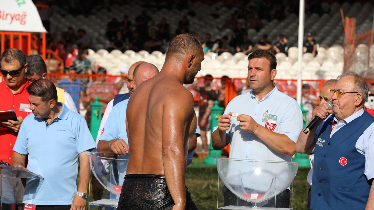 Müsabakalar kapsamında başpehlivanlık güreşlerinin son turu için başpehlivanlar kura çekimi için çayıra çağrıldı.