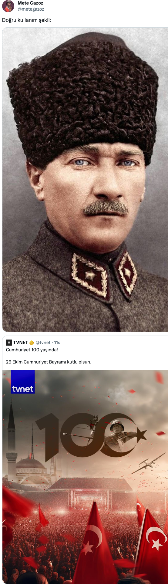 TVNET'in afişinde Türkiye Cumhuriyeti'nin kurucusu Mustafa Kemal Atatürk yerine Mete Gazoz yer aldı.