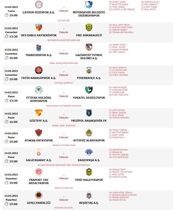 Türkiye Futbol Federasyonu internet sitesinden 25. haftanın maçlarını yönetecek hakemleri açıkladı.