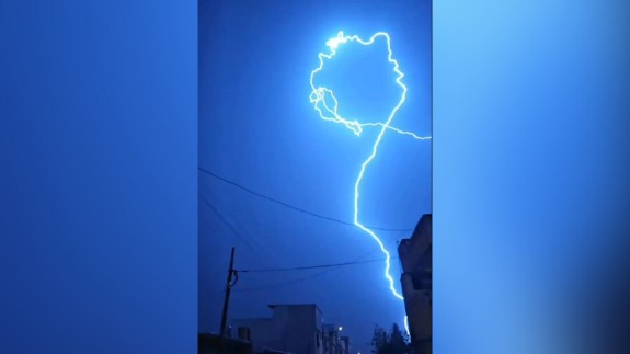 Yıldırımın elektrik direğine çarpma anı kamerada