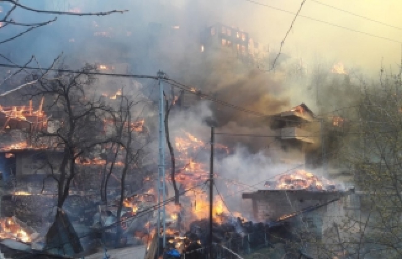 Artvin'in Yusufeli ilçesinde yangın dehşeti! 50'den fazla ev yanıyor