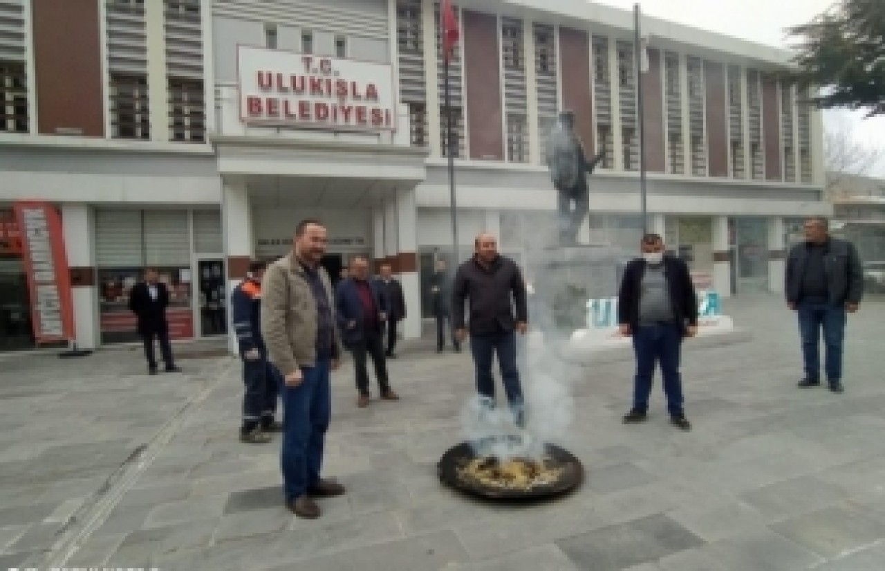 Belediye ekibi koronavirüs gitsin diye tütsü yakıp ilçeyi gezdi