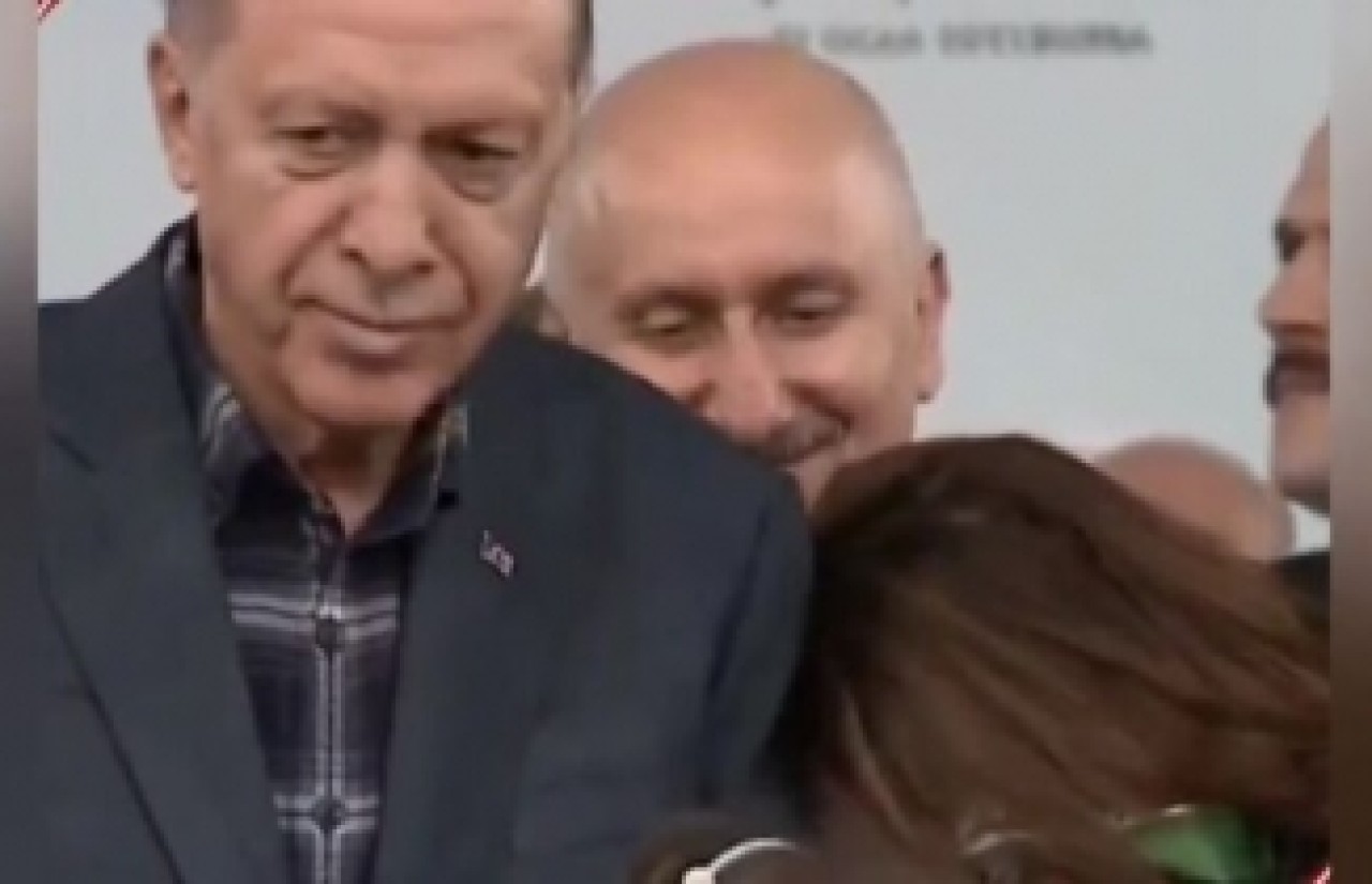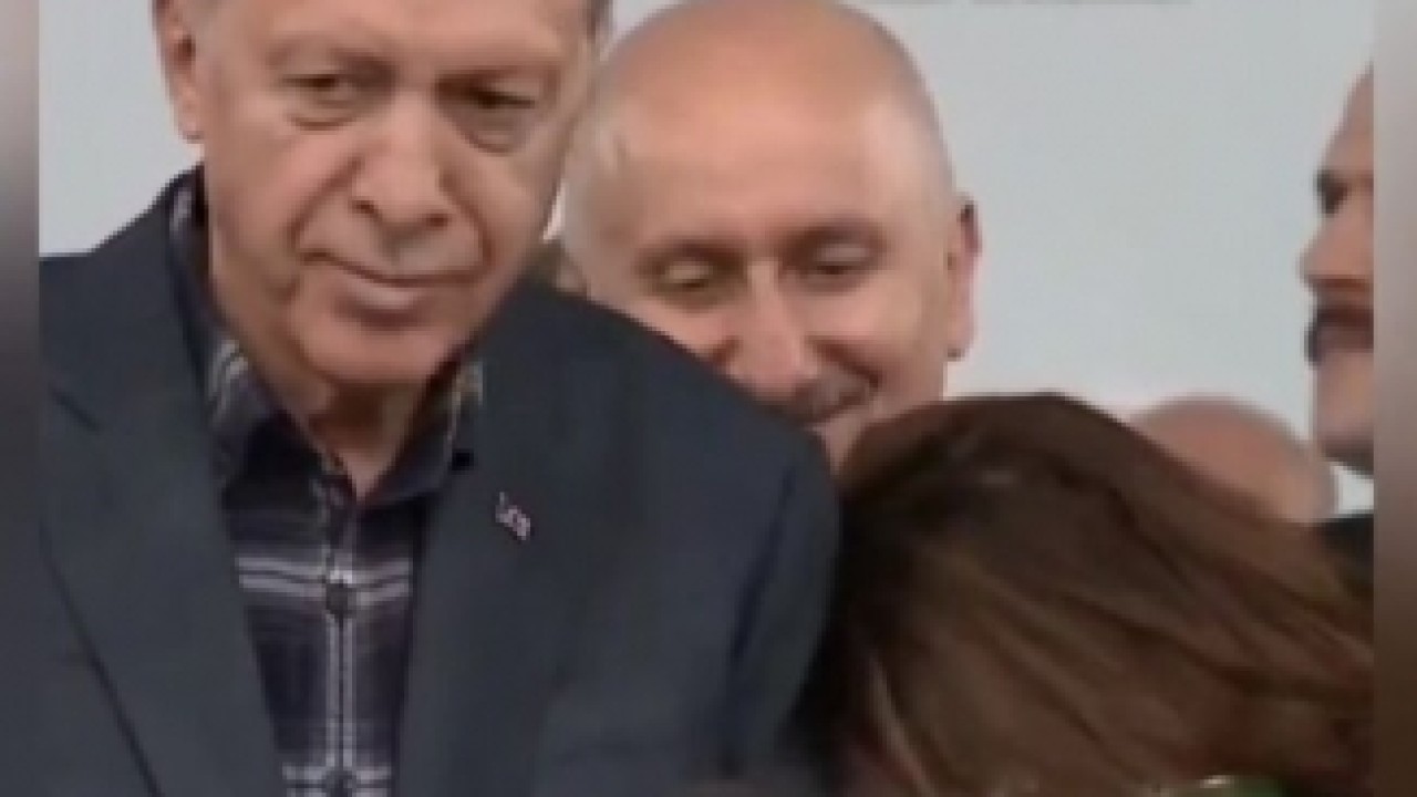 Ortadoğu Gazetesi Videolar GÜNDEM Erdoğan'ın Bursa mitinginde ilginç anlar: Kadın, başını Erdoğan'ın omzuna yaslayıp bakın ne yaptı